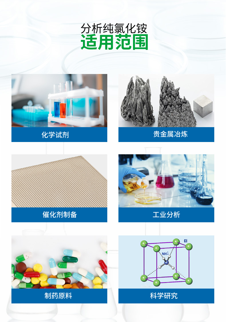 分析純氯化銨是采用工業(yè)級氯化銨為原料,經(jīng)過特殊工藝處理,使分析干擾雜質(zhì)減至 。氯化銨主含量達到99.8%以上,澄清度符合三級標準,主要用于重要的工業(yè)分析和一般性科學研究工作。